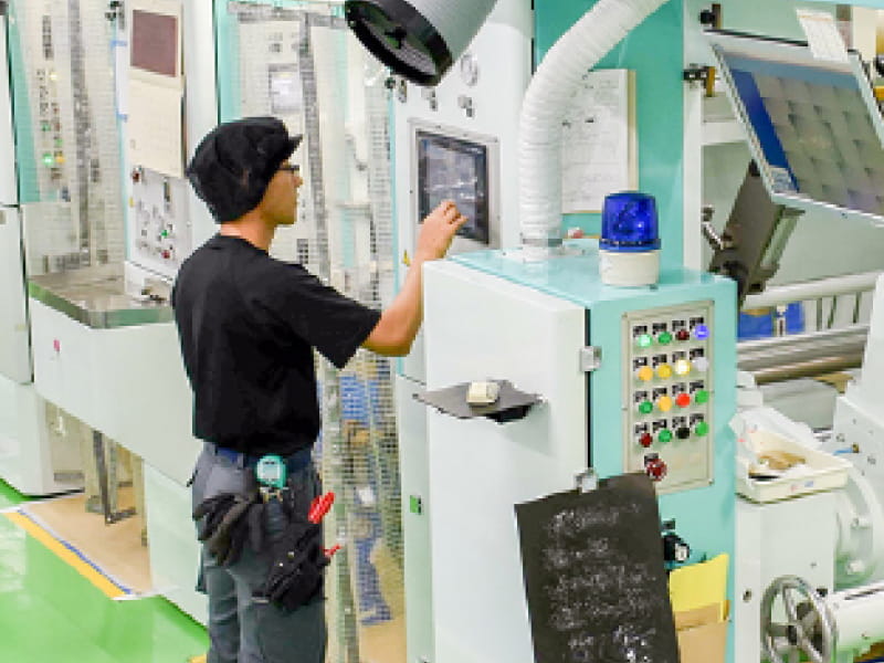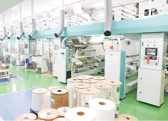 印刷から製袋、カッティングなどの加工を一貫したライン上でトータルに行います。
