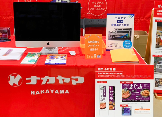 イベントブースなどで使用される、看板・テーブルクロス・バナー・椅子カバー・ノベルティグッズなどのご提案と製造をいたします。