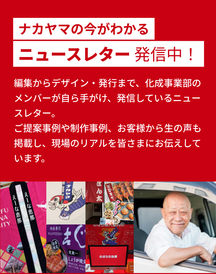 のぼり・横断幕・旗(社旗から手旗まで)の製作をいたします。のぼりを立てることでの宣伝効果は様々です。ニーズに合わせて、最適なデザインも提案いたします。